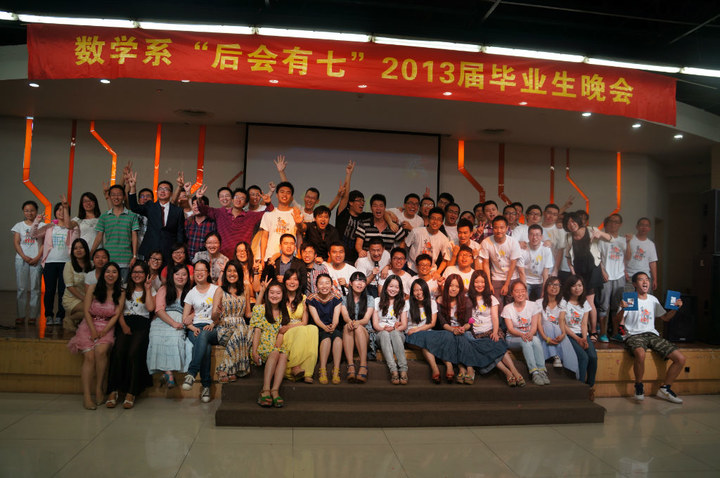 2013年6月3日,数学系“后会有七”2013届毕业生文艺晚会在大学生活动中心准时上演并取得了圆满成功。数学系系主任刘继军老师、副主任薛星美老师、林金官老师、陈文彦老师,数学系党委副书记曹海燕老师,以及各兄弟院系的团委书记、辅导员老师们出席了本场欢送晚会。 晚会一开始,数学系系主任刘继军老师代表数学系党政领导班子讲话,向我系2009级毕业生送上了浓浓的毕业祝福,同时刘主任也以本系毕业的学长身份祝愿大家毕业顺利,前程似锦,记得常回家看看。刘主任的一番暖人肺腑的言语博得了在场所有同学热烈的掌声。 暖场视频后,一曲《你最珍贵》正式拉开了晚会的第一个节目。幽默诙谐的相声表演《被毕业了》、让人捧腹的恶搞新闻联播的节目《一笑快讯》、轻松幽默的小品节目《艺数空间话人生》、精彩的歌曲串烧、深情甜蜜的情歌对唱等节目无不展现了大四学长学姐们幽默活泼、多才多艺的一面。此外,由大二同学们带来青春洋溢的舞蹈《舞动青春》以及大一同学们创意无限的小人舞《四个小矮人》成功带动了晚会的气氛。与此同时,丰富精彩的互动节目在晚会中穿插进行,益智类互动节目《谁是卧底》以及妙语连珠的人人墙、抽奖环节无疑为晚会增添了光彩,使晚会更加有趣,且互动性十足。幽默而不乏深情的朗诵《曲终人不散》勾起了毕业生们对大学四年的回忆,一段记录毕业生们对大学四年的感悟的视频《那些年》使晚会的气氛充满温情与感动,不少同学因此热泪盈眶,感慨颇深。晚会在2009级毕业生们集体合唱《第一时间》声中圆满落幕,留下了他们紧紧拥抱彼此不舍离去的身影。正如大四毕业生们所言,大学四年,收获的不只是知识和能力,更是珍贵的友情。 数学系“后会有七”2013届毕业生文艺晚会取得了完满成功。毕业,不只是对过去的结束,更是人生新的开始。愿大四的学长学姐们带着学弟学妹们深厚的祝福,在人生的旅途中收获成功与幸福! |