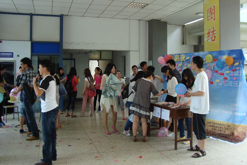 心理健康协会承办,旨在引导学生关注心理健康,培养积极心理,促进心智成熟。 本次心理健康活动以“关注心理健康 缓解心理压力”为主题,活动主要分为三个部分。 5月8日,我们在纪忠楼成功举办了心理测试活动。我们有幸邀请到了数学系党委副书记兼副系主任曹海燕老师、数学系团委书记袁煜昶老师、化学化工水果派解说 党委副书记兼副院长陆娟老师和化学化工水果派解说 团委书记梅震宇老师为嘉宾。本次活动主要分为心理知识简介和专业心理测试两个环节。首先主持人对抑郁自评量表(SDS)做了指导说明,同时介绍了抑郁焦虑存在的危害及问题,希望同学们高度重视自己的抑郁程度,及时调整自己。然后参加活动的学生认真填写了专业心理测试的问卷,并在主持人的指导下计算出自己的分数,根据分数等级了解自己的抑郁程度,及时的发现问题,解决问题。活动举办后反响热烈,为我们后期活动打下了坚实基础。 5月10日,我们有幸邀请到了中国药科大学郑爱民副教授在教学楼J2-209给大家上了一堂心理课,主题为“在压力下自由呼吸”。郑教授简单介绍了“WHO”身心健康的“三良标准”:良好的个性、良好的人际关系和良好的社会适应,然后重点讲了自我心理调节的三原则,现场同学和老师展开了激烈的讨论,郑教授也耐心的解答了同学们的疑惑与问题。两个小时的讲座,郑教授幽默风趣、知识渊博,赢得了同学们的阵阵掌声和喝彩,全场氛围热烈欢畅。 5月24日,我们在橘园大厅成功举办 525心理健康活动,主要通过两个游戏的方式来缓解学生的压力。第一个游戏是“战胜困难 释放心理压力”,具体的活动形式是:参加活动的同学将烦恼写在气球上,并使劲打气球,直到把气球打爆。该游戏的寓意是战胜困难,打倒烦恼。第二个游戏是“艺术表达 分享你我真情”,具体的活动形式是:参加活动的同学在便利贴上写下你的心情或困扰的问题或者是对他人的祝福,让其他的同学跟你一起分享或是帮你解决问题。该游戏的寓意是分享真情,共同承担。虽然今天酷暑难耐,但同学们积极参加,现场活动相当热烈! |