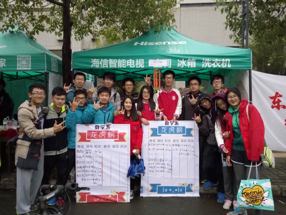 第五十七届校运会在九龙湖校区桃园体育场成功举办。此次运动会共有来自24个院系的1500多名运动员参加,前后共有2600多名师生参与了运动会的筹备和裁判工作。我系共派出50名运动健儿参加比赛。经过两日的激烈角逐,数学系共摘得一金三银,以总分147分收获乙组第四的好成绩。 11月7日上午九时许,水果派解说