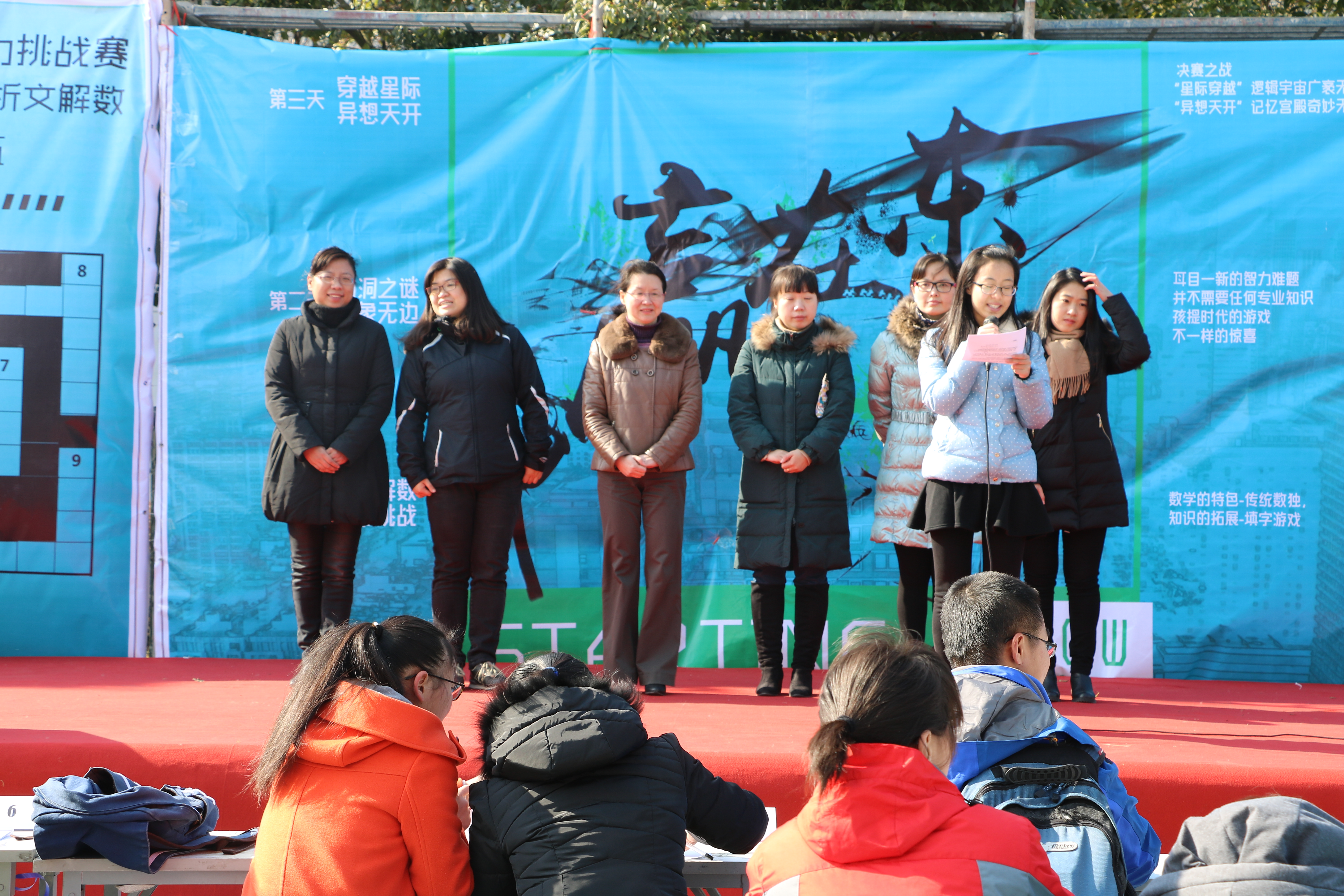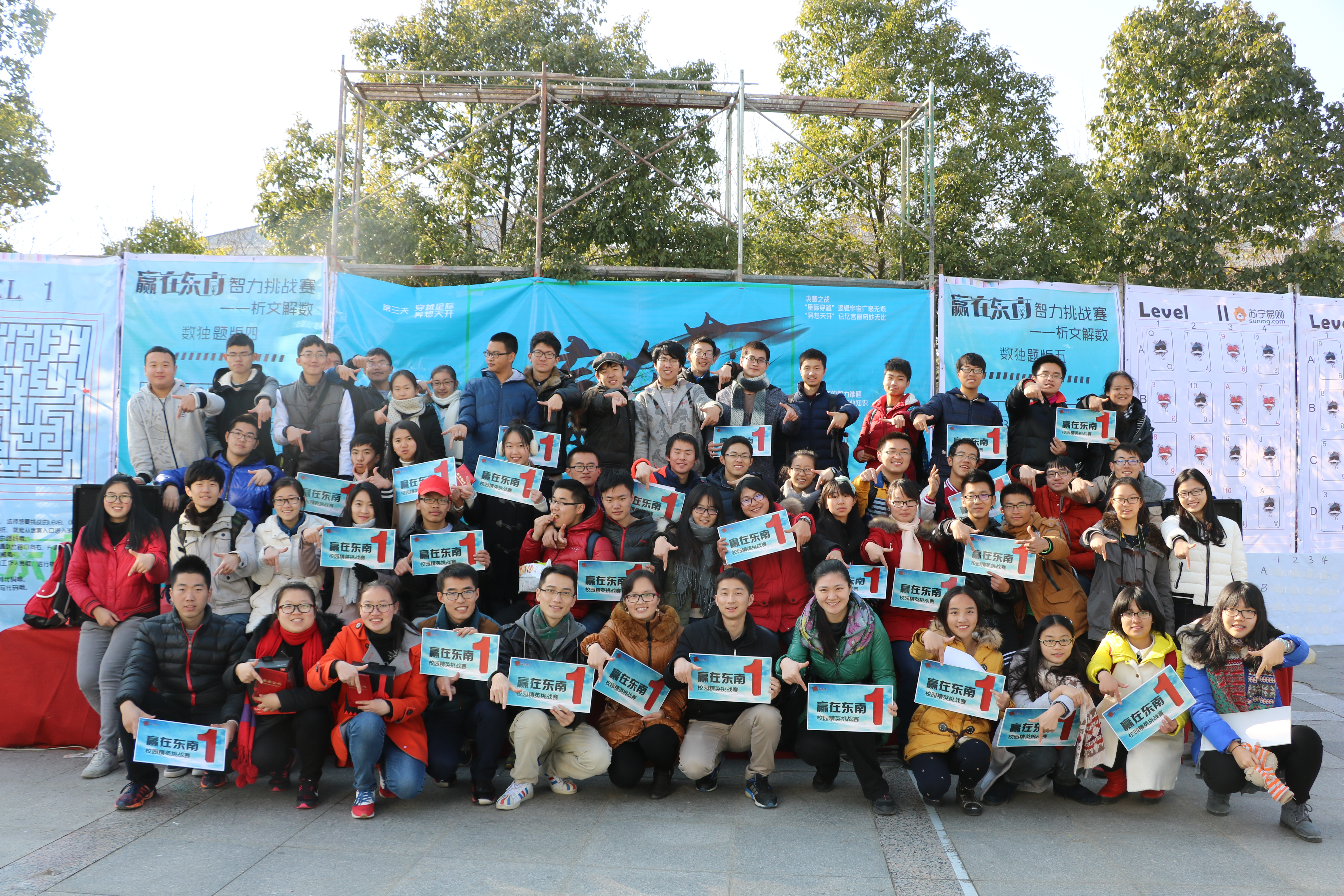 12月18日,由水果派解说 校团委主办,数学系团委、数学系学生会承办的第七届“赢在东南”校园智力挑战赛在大活广场圆满落幕!挑战赛于12月16日正式来开帷幕,数学系党委书记吴映红老师、校团委副书记张璐老师、数学系党委副书记曹海燕老师、系团委书记袁煜昶老师和班主任陈和老师出席开幕式,并由数学系党委书记吴映红老师宣布开幕。历经三天的角逐,从40支参赛队伍中成功突围8组选手,进入决赛。在激烈的比拼和无限悬念的积分排名争夺后,一支来自数学系大三和大一年级的团队最终拔得头筹。