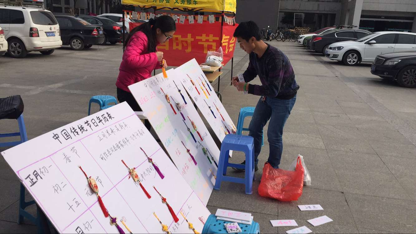 最后,还有活动的重头戏――“四时节气会,温旧拾遗园”。这个活动是整个系列活动的重要环节。为了准备好这样一个面向全校的活动070141团支部全员出动,筹划着活动的各个流程。问卷筹备部分,每位成员出谋划策,将这段时间内学到知识运用起来,贡献了各种选择题,问答题,最后筛选出成了4套知识竞赛题。题板制作阶段,支部优选了几名字迹工整的成员连夜赶制,虽然时间紧,任务重,几名制作成员还是保质保量地完成了任务。为了吸引更多的同学参与其中,支部还精心准备了传统礼物,中国结等等。活动当天,场面相当火爆,实在出乎意料,略有遗憾的是,准备的题板相对较少,不能够很好的适应这样火爆的场面。不过,这也反映出“温旧拾遗园”活动对全校同学的吸引力,以及大家对传统文化的关注。