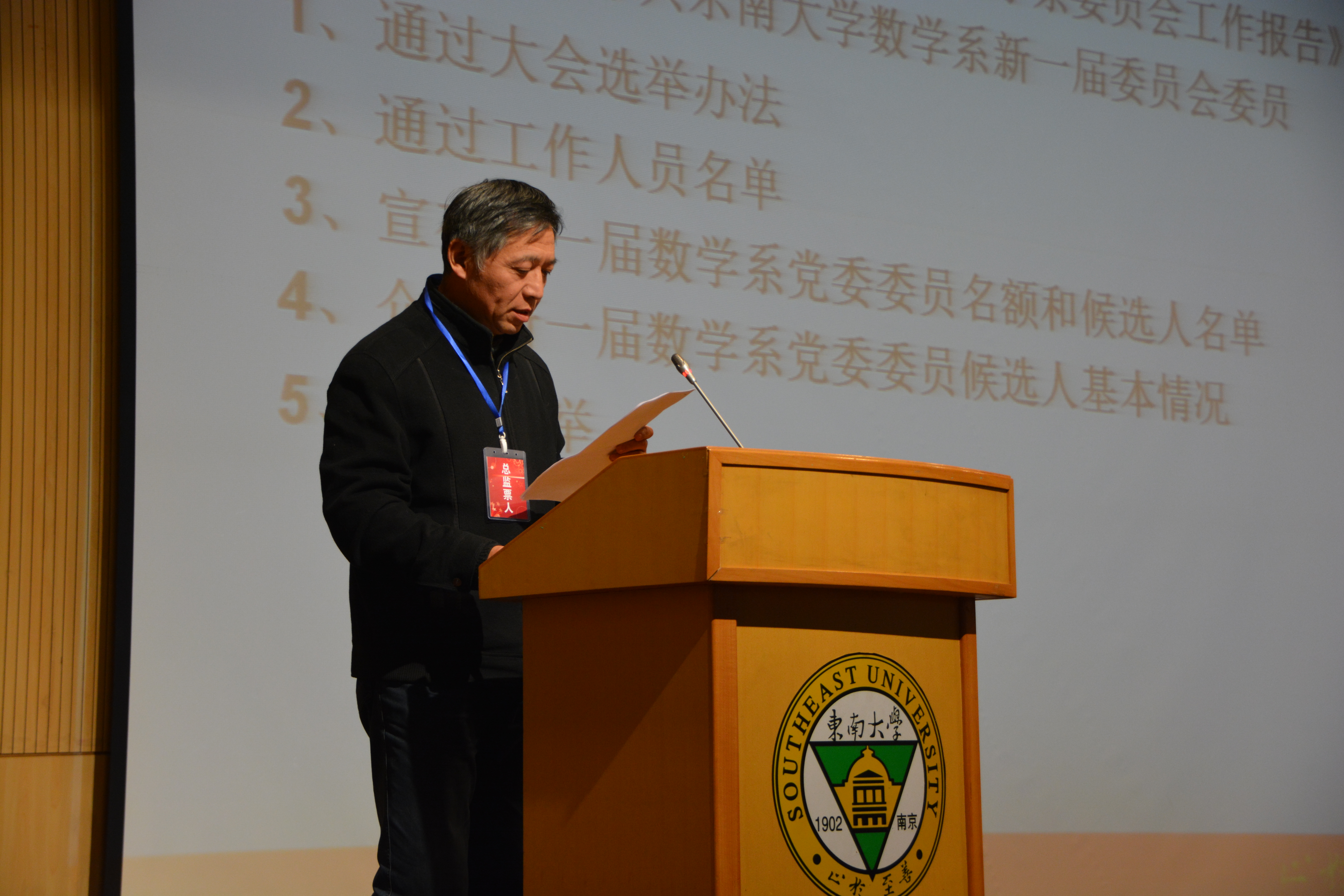 根据《中国共产党章程》及《中国共产党基层组织选举工作暂行条例》有关规定,按照学校党委的统一部署与要求,经过精心筹备,我系党委于 12月30日中午在九龙湖校区润良报告厅隆重举行中国共产党水果派解说 数学系换届选举大会。校党委副书记刘鸿健同志、校组织部副部长刑纪宏同志莅临大会,全程指导、监督整个会议,系党委副书记曹海燕同志主持大会。