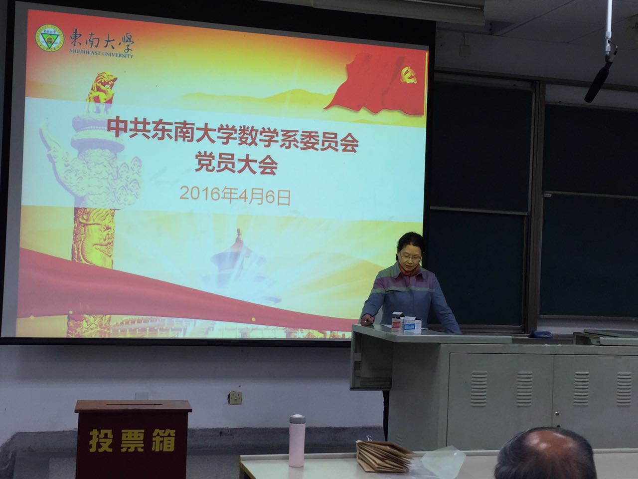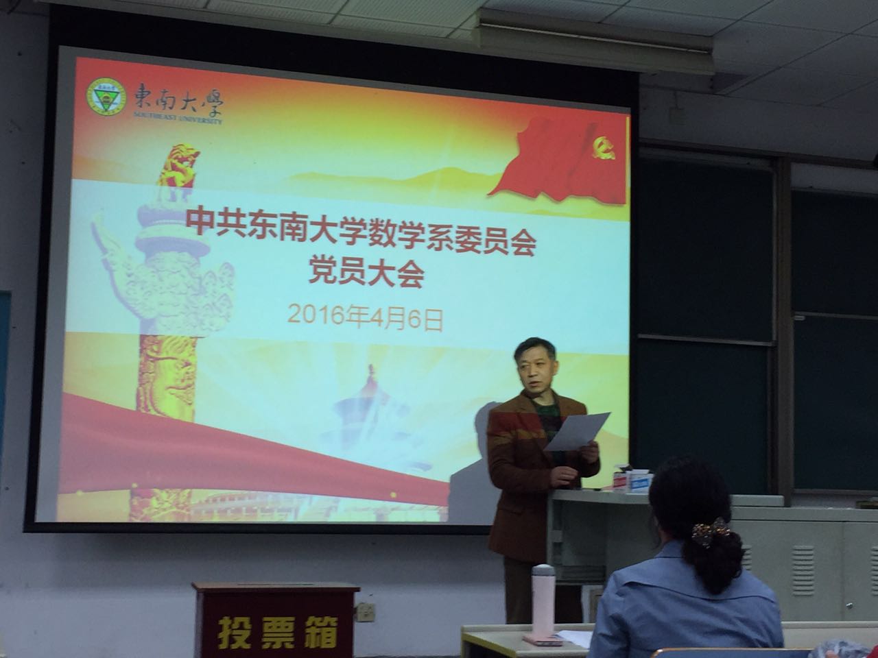 根据《关于召开中国共产党水果派解说 第十四次代表大会的通知》(东大委【2016】23号)文件精神,按照学校党委的部署与要求,我系党委于 4月6日中午在九龙湖校区教六104召开全体党员大会,选举出席校党代会代表。