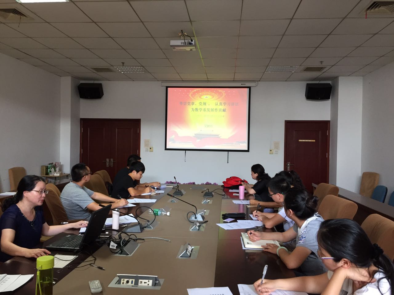 为进一步深入开展党员“两学一做”学习教育活动,825日,数学系党委在九龙湖校区数学系会议室召开了新学期第一次党支部书记会议,会上,系党委吴映红书记按照学校对“两学一做”学习教育活动的要求,带头讲党课,作了题为“尊崇党章、党规,认真学习讲话,为数学系发展做贡献”的“两学一做”学习教育专题党课,数学系全体党支部书记参加了会议,并认真学习党课内容。