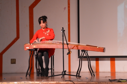 朱婉灵老师与李佳明同学的合奏更是让大家眼前一亮,东方与西方,古典与现代,旗袍与西装,在古筝和小提琴琴弦下流淌出婉转悠扬的渔舟唱晚。