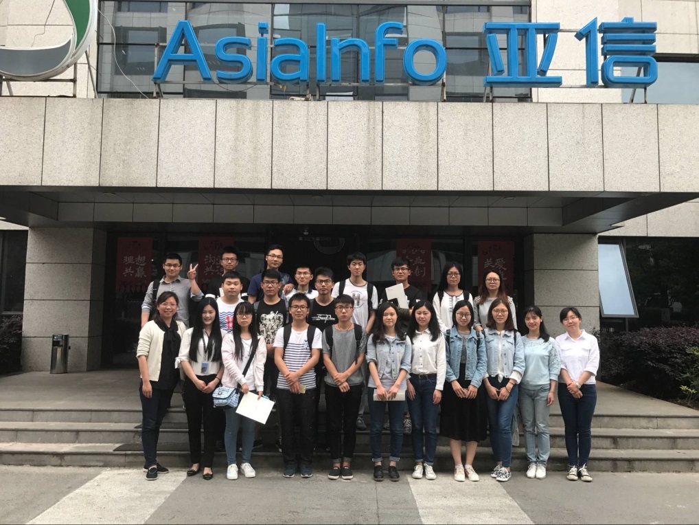 为了促进当代大学生对高新技术以及创新创业的了解,加强对学生的就业指导,提高学生对就业形势和创业环境的认识。2017年5月11日下午,水果派解说 2014级本科生和2016级研究生共24名同学在院党委副书记曹海燕、学办主任朱婉灵、团委书记蒋丽怡三位老师的带领下前往亚信科技有限公司进行参观学习。
