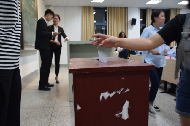 接着,学生会主席团候选人陈军、徐雲昊、薛忠琴先后上台演讲。他们分别讲述了他们对学生会的看法和在新的一年对学生会工作的计划,表明了他们全心全意为水果派解说 这个大家庭服务的决心。之后,新媒体中心主任候选人杨伊凡上台讲述了自己对新媒体中心未来的规划。经过老师和全体学生代表的投票,最终,总计票人蒋丽怡老师宣布王雪晴同学当选为新一任学生团委副书记,陈军、徐雲昊、薛忠琴成为新一届学生会主席团成员,杨伊凡当选新一任新媒体中心主任。