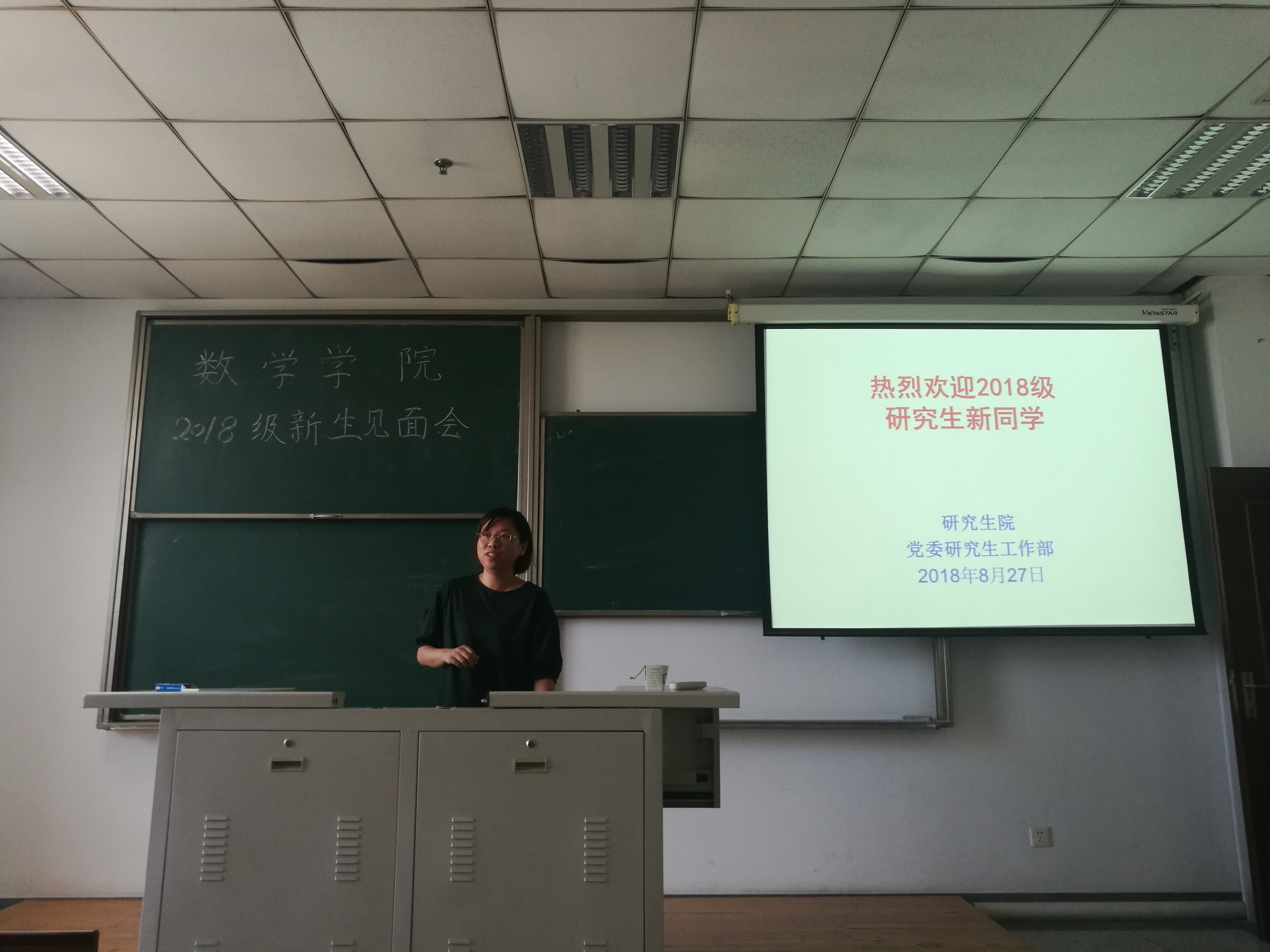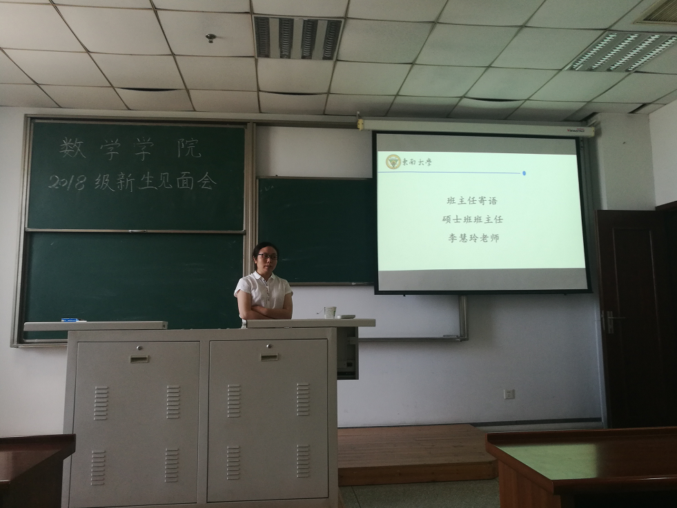 在专业介绍中,李玉祥副院长指出基础能力、交流能力、自我管理能力是科研的必备能力,在学术道德和诚实守信方面为我们提出了要求;曹海燕副书记从社会需求、就业形势等方面进行分析,鼓励数院研究生立志高远、积极参加社会实践和志愿服务,强调了在学籍管理规定;李慧玲老师为18级新生送上欢迎祝福,并鼓励大家在东大数院度过快乐充实的研究生生活;张鑫老师同样送上了欢迎祝词,并说明了东大数院人该做到的责任和义务;研究生秘书周欣老师详细介绍了研究生答辩申请以及学籍管理的主要流程;最后,新生辅导员王汉卿召开了第一次年级大会,让初来学校的研究生新生迅速了解研究生日常事务办事流程,更好的融入研究生生活。
