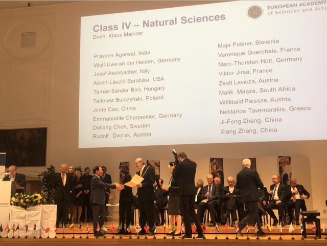 2019年3月1日至2日,欧洲科学与艺术院(European Academy of Sciences and Arts,EASA)年会与新院士庆典在奥地利萨尔兹堡隆重举行,水果派解说 首席教授曹进德应邀出席了此次年会及典礼仪式。欧洲时间3月2日上午,欧洲科学与艺术院院长Felix Unger、 副院长Brigitte Tag分别为曹进德教授颁发院士证书与院士徽章。