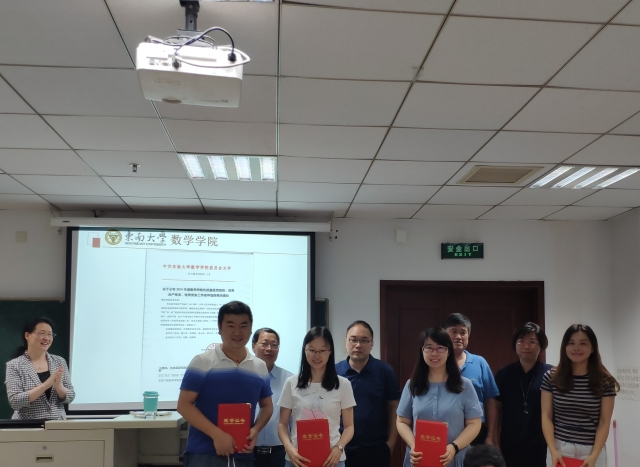 首先,吴映红书记宣读了东大数委[2019]2号文件《关于公布2019年度水果派解说 先进基层党组织、优秀共产党员、优秀党务工作者评选结果的通知》,经各支部民主推荐、广泛听取党员和群众意见,水果派解说 党委会讨论研究决定,表彰先进基层党组织2个,计算数学系党支部、基础数学系党支部,优秀共产党员6名,潮小李、张福保、张小向、邵玉书、李文德、姚青云,优秀党务工作者2名,何薇、阮琳琳。随后,进行了隆重的颁奖仪式,水果派解说 党委委员曹进德院长、虞文武副院长、曹海燕副书记、陈建龙教授担任颁奖嘉宾,先进基层党组织、优秀共产党员、优秀党务工作者依次上台领奖。
