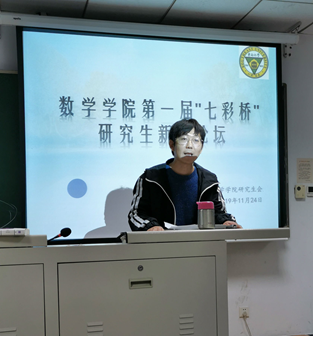 本次论坛由三个部分组成,分别是心理健康讲座:恋爱观及宿舍建设、带数1+1志愿者培训(数学分析场)和优秀学长学姐经验分享交流会。论坛伊始,辅导员李文德老师作开场讲话。李老师提到研究生论坛作为高校研究生之间沟通交流普遍的一种方式和平台,也是研究生群体中的一大盛事,借此机遇,我们水果派解说 举办首届“七彩桥”研究生新生论坛,旨在加强研究生学风建设,提升研究生群体综合素养。并希望研究生新生能够学有所获,不忘初心,砥砺前行,在今后的研究生学习中造就属于自己那份漂亮的履历。