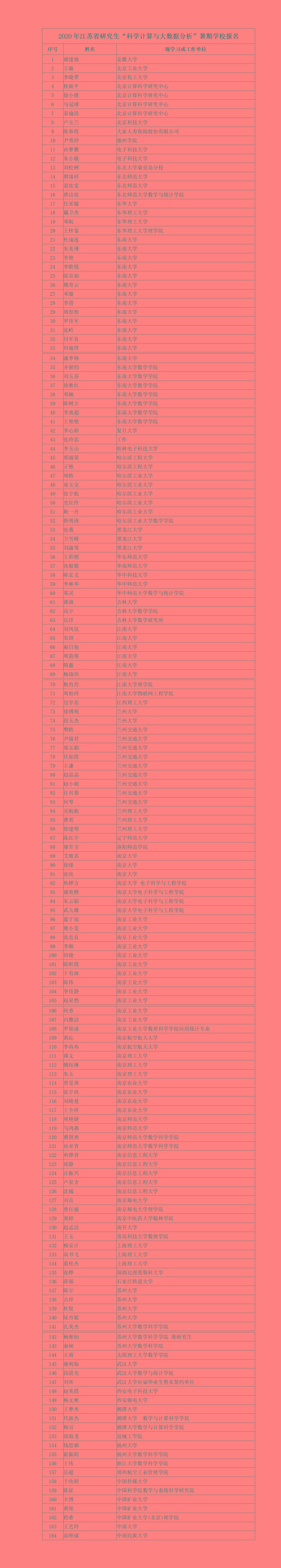 经审核,江苏省研究生暑期学校“科学计算与大数据分析”录取学员名单详见下表。请各位学员加入课程学习QQ群: