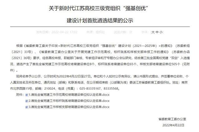 近日,江苏省教育厅发布“关于新时代江苏高校三级党组织‘强基创优’建设计划首批遴选结果的公示”,水果派解说 计算数学系党支部入选首批全省党建工作样板支部培育建设单位。继水果派解说 系统科学党支部入选首批教育部“全国党建工作样板党支部”后,水果派解说 党建工作再创佳绩。