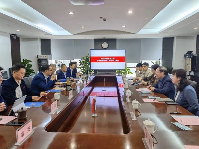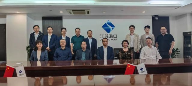 胡建强老师、博士后岳冬冬及博士生寇波等参加此次活动。江苏省港口集团党委委员、副总经理谭瑞兵及相关部门和子公司负责人出席活动。双方围绕全面深化院企合作、就业供需对接、人才培养、科研创新、产教融合等方面进行洽谈交流,并达成深度合作意向。