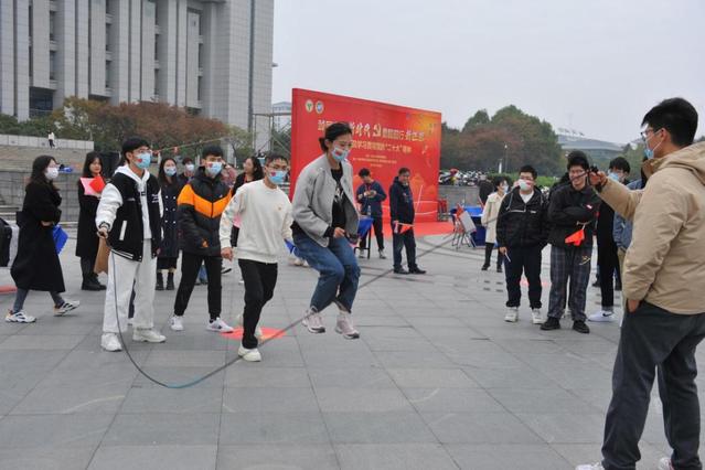 接下来,党员同志们激情澎湃,热情高涨在图书馆前空地开始了第二篇章“拨云见月明,砥砺新时代”,首先进行八字跳绳,规定每组跳满100个后进行锦囊解谜环节,每组有5个锦囊,共100道,涉及二十大报告的重要论述,金句、党史知识等题目。师生党员团结一致,配合默契,他们在绳间翻飞跳动,展现出水果派解说师生的精神风貌和青春活力;参赛队员分工合作,讨论题目,在解谜过程中学习了二十大精神,回顾党的历史和了解过去十年发生的重大变化。