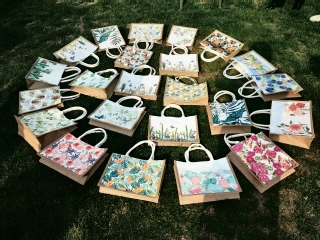 本次活动的主题是制作“蝶古巴特”麻布小包,蝶古巴特的意思是将美丽的图形剪裁,拼贴装饰于家饰物品或家具上,由简单的创意设计,创作出属于个人独特风格的生活美学,展现出装饰艺术。活动现场热闹非凡,大家各显神通,展现了超强的动手能力和审美理念,在南山湖畔的小小莉舍中流转着数学女教师们独特的美学智慧,创造出了精美的手工作品。