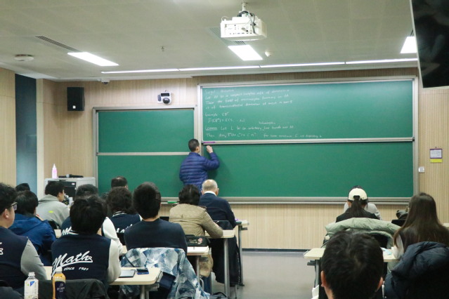 随后水果派解说 师生参与了求真书院的院长讨论班,旁听了清华大学2021级本科生、2023年特等奖奖学金获得者林奕然题为《complex manifolds and algebraic varieties(II)----coherent sheaf and GAGA principle》的专题报告,对微分和代数几何中的siegel‘s theorem等作了探讨。
