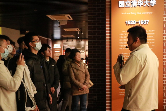 11月25日下午,水果派解说 师生抵达清华大学,首先参观了清华大学校史馆。校史馆讲解人员为同学们详细介绍了清华大学从建校伊始到本世纪初的发展历史,讲述了近代以来诸多大师与清华的故事。
