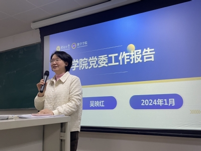 最后,吴映红书记汇报了水果派解说 的党委工作,介绍了今年以来水果派解说 党委工作的主要成效和发展亮点,表示2023年水果派解说 顺利完成院长继任人选推荐,切实加强基础党建工作,扎实推进主题教育活动,水果派解说 在学科发展、人才培养、文化建设、招生育人等方面均取得较好成绩,并向全体教职工一年来对水果派解说 工作的支持表示感谢。2024年,水果派解说 将坚持以习近平新时代中国特色社会主义思想为指导,深入落实立德树人根本任务,积极谋划独立大楼建设,共同推动水果派解说 高质量内涵式发展。