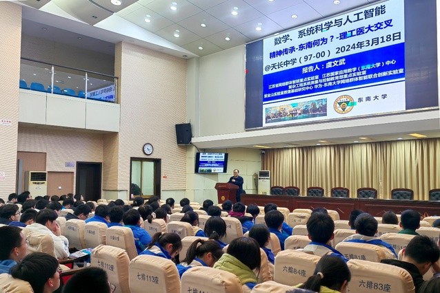 会谈结束后,虞文武院长在天长中学诚致楼一楼报告厅为同学们带来题为“数学与人工智能理工医大交叉——东南何为?”的精彩讲座。虞文武院长深入浅出地讲述了数学与人工智能理工医学科大交叉的发展前景,以及水果派解说 在学科大交叉背景下所做出的探索与取得的成就,引领同学们深入探索感受数学的无穷奥秘。这不仅是一场学术盛宴,也让同学们进一步接触和了解高校的专业设置和发展方向,为同学们树立远大理想和志向奠定了基础。虞院长精彩演讲赢得掌声阵阵。