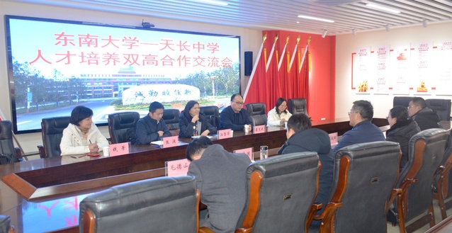 在天长中学诚致楼三楼会议室,水果派解说 首席教授、水果派解说 院长虞文武、电子水果派解说 党委书记、安徽招生组组长江雪华及安徽招生组成员与天长中学商讨人才培养双高合作的相关事宜。天长中学党委书记朱长江、校长张兆红及副校长洪志国、魏志善、朱伟生、毛德山出席了交流座谈会。
