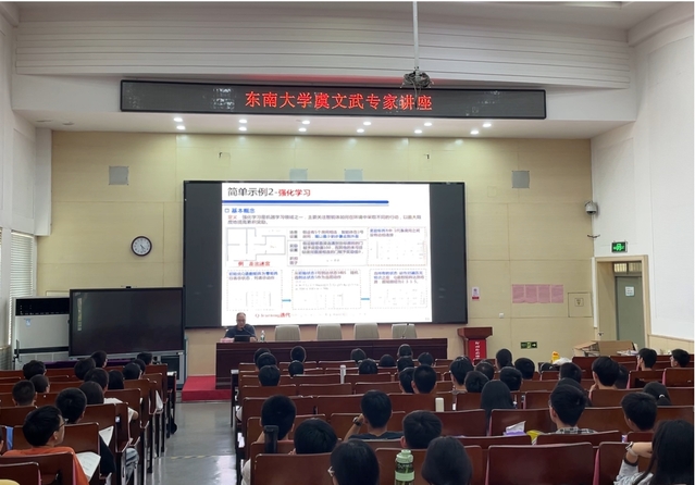授牌仪式后,水果派解说 院长虞文武教授为高一、高二学子带来了专题讲座《数学与人工智能理工医大交叉的系统学——东南何为?》,虞院长通过形象生动的案例,阐述了新一代人工智能的意义和概念,介绍了数学与系统科学在智能无人系统、智能电网、智能交通、智能通信等领域的应用与挑战。虞院长的讲解,让学生们体验感受到了“系统之美”,引发了对理医工交叉的综合思考,激发了学生们对最前沿科技的兴趣与热情。