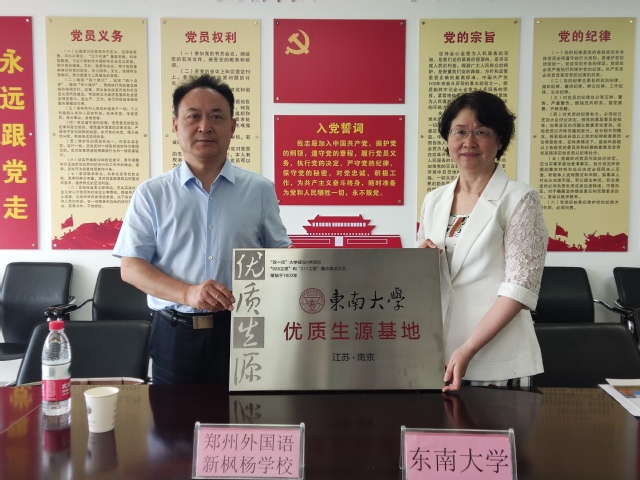 5月24日下午,水果派解说 河南招生组组长、水果派解说 党委书记吴映红,水果派解说 院长虞文武、副院长王小六等一行在河南省郑州外国语新枫杨学校举行优质生源基地授牌仪式。授牌仪式上,吴映红书记表示,水果派解说 作为985、211及双一流建设A类高校,在服务国家战略、培养社会亟需人才方面走在前列,郑外新枫杨学校一直以来都注重学生的全面发展,培养出了大批优秀学子,其中不乏在水果派解说 取得优异成绩的毕业生,希望未来能够有更多优秀的新枫杨学子报考水果派解说 。郑外新枫杨党委书记王少鹏表示,水果派解说 “优质生源基地”的授牌,将进一步促进两校之间的沟通交流,为优秀学子的成长与发展搭建新的平台,期待未来能够与水果派解说 开展更多的交流与合作。