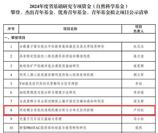 同时,水果派解说 今年在江苏省自然科学基金评审中也喜获佳绩,其中省攀登1项(卢剑权),省杰青1项(付俊杰),省面上2项(吕思宇,刘洪喆),省青年6项(杨鑫、王一淳、贾晓含、徐雪枫,赵忠义、贾文文)。全省攀登项目共资助15项,杰青项目共资助100项。