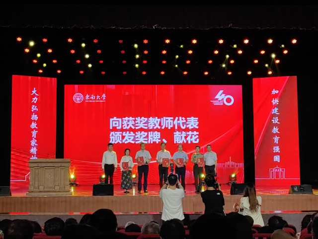此外,9月10日下午,水果派解说 举行了教师节庆祝大会,校领导向获奖教师代表颁发了奖牌,并向退休教师代表颁发了纪念品。水果派解说付俊杰老师获新人才奖,潮小李老师获教学卓越奖,沈斌老师获教学新秀奖。江其宝老师、殷翔老师作为荣休教师代表上台领奖。
