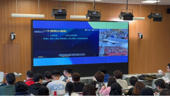 下午4点,关老师带领着四校近200名师生,以一个折纸小游戏作为同步课堂的开端。通过这个小游戏,关老师旨在启发学生认识到AI时代两项至关重要的学习能力:提出问题的能力以及清晰表达自己的能力。这两项能力的培养,正是关老师在AI和知识图谱支持下,实施线上线下融合教学的核心基石。