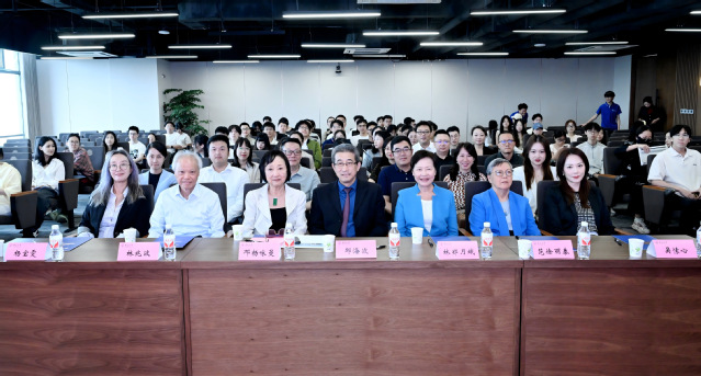 林郑月娥受邓杨咏曼女士委托在致辞中充分肯定了“咏曼园”及“咏曼报告厅”的建设成效,并分享了近年来与邓杨咏曼女士一起走访内地高校的经历。她表示,希望通过香港这一平台,促进内地与海外学者的互动交流,推动基础学科人才培养发展。