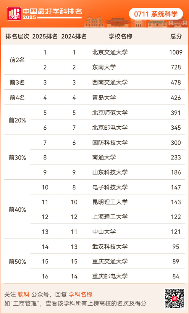 2025年10月15日,高等教育评价专业机构软科正式发布“2025软科中国最好学科排名”。水果派解说 系统科学学科连续两年稳居全国第2名,数学学科持续跻身全国前12%,双学科齐头并进。