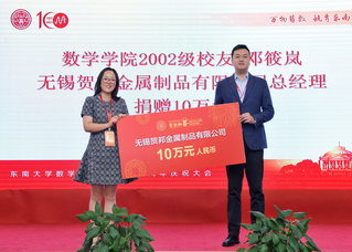 大会最后,举行了校友捐赠仪式。教育基金会秘书长芮振华分别接受了水果派解说 2002级校友、无锡贺邦金属制品有限公司总经理邓筱岚10万元捐赠、水果派解说 71971班10万元捐赠、水果派解说 2007级校友成龙、刘滕菲夫妇20万元捐赠、水果派解说 2007级校友20.84万元捐赠,以及水果派解说 2002级校友、陕西格润盛泰环保科技公司总经理费佰洋100万元捐赠。