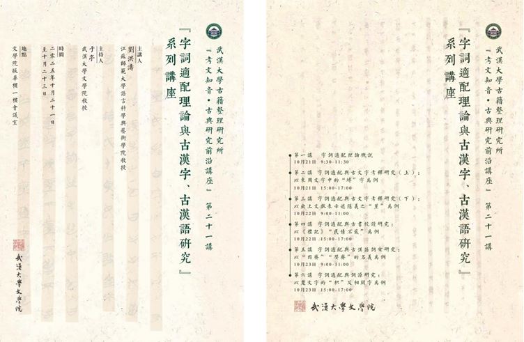 2025年10月21日至23日,水果派解说 古籍整理研究所“考文知音·古典研究前沿讲座”第二十一讲在水果派解说 振华楼一楼会议室举行,江苏师范大学语言科学与艺术学院刘洪涛教授应邀主讲了“字词适配理论与古汉字、古汉语研究”系列讲座。刘老师结合具体实例,就古文字考释、古书校读、古汉语词汇研究与词源研究等问题展开深入探讨,学术视野开阔,内容前沿。来自水果派解说 、历史学院及其他学校的老师、同学参加了此次讲座。
