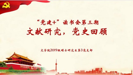 百年栉风沐雨,百年砥砺前行。2021年是中国共产党成立一百周年,值此建党百年之际,响应学校及学院扎实推进党史学习教育,促进广大研究生党员学史明理、学史增信、学史崇德、学史力行的号召,水果派解说 2019级硕士研究生第三党支部于2021年4月30日举行以“文献研究、党史回顾”为主题的第三期“党建+”读书会,追思革命先烈事迹,激发爱国爱党热情。会议由支部书记董雅文进行主持。