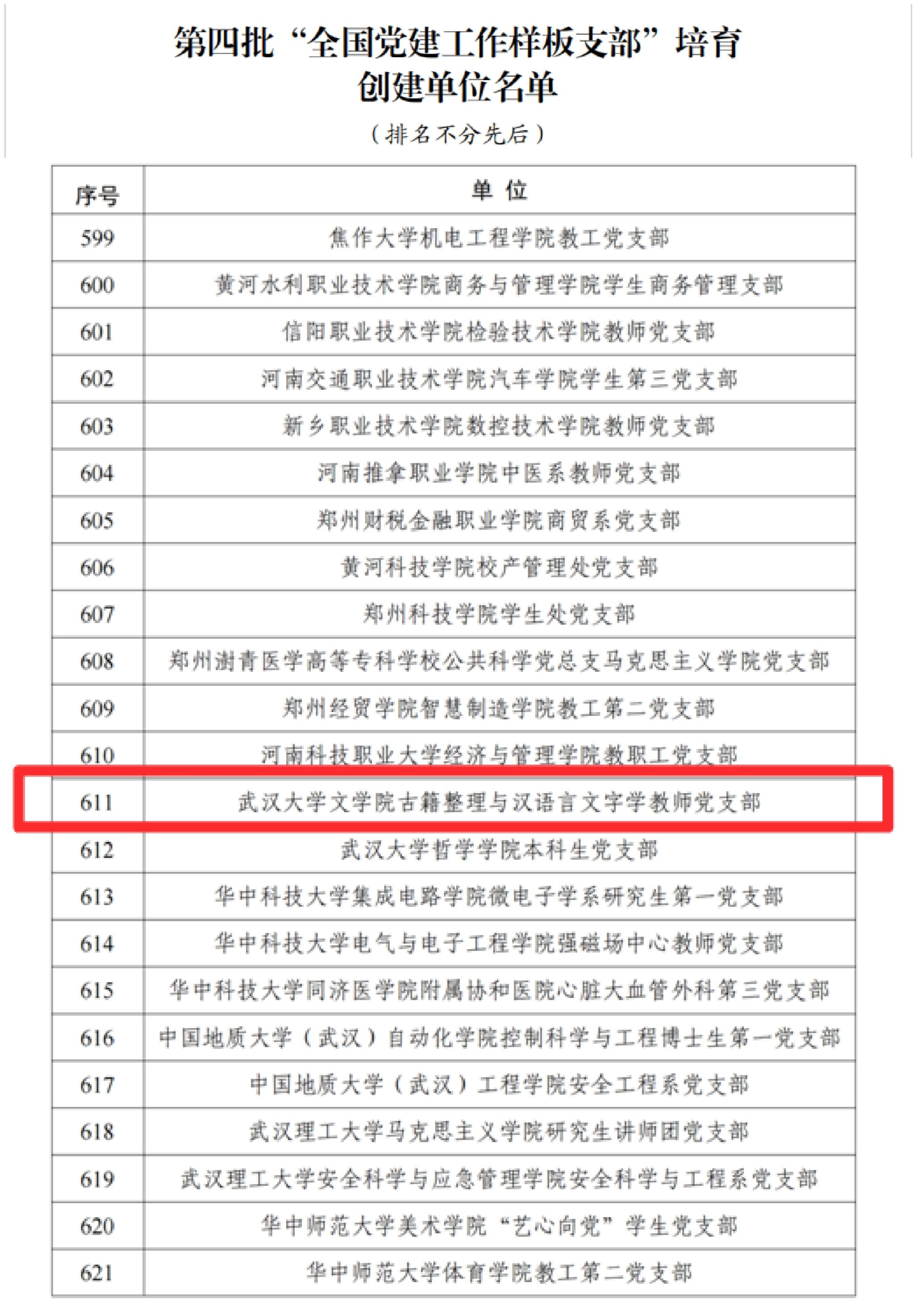 近日,教育部公布了第四批新时代高校党建示范创建和质量创优工作遴选结果。学院古籍整理与汉语言文字学教师党支部入选“全国党建工作样板支部”培育创建单位。
