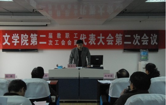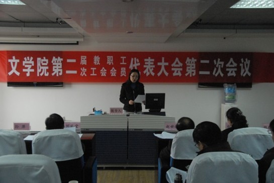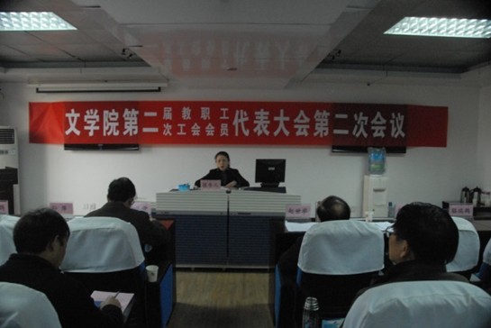 工会主席席彩云作了工会工作报告。2010年学院工会以“凝聚职工,增强活力”为工作原则,加强教代会、工会的组织建设,促进了二级教代会的规范化、民主化进程,完成大量事务工作,实现二级工会的维权职能,开展丰富的文体活动,凝聚人心,振奋精神。2011年学院工会将重建职工之家,组织教职工春游,成立学院羽毛球队和篮球队,组织教职工锻炼身体等等。