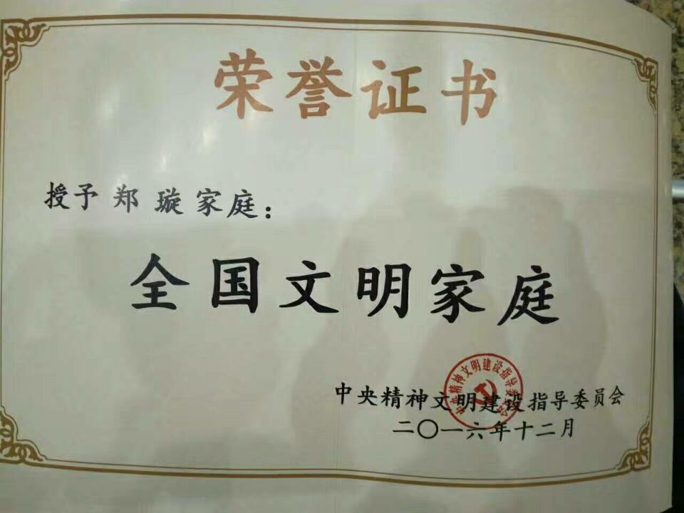 12月12日上午,第一届全国文明家庭表彰大会在北京召开的,全国有300户家庭获得“全国文明家庭”的殊荣。中共中央总书记、国家主席、中央军委主席习近平亲切会见全国文明家庭代表,并发表重要讲话。水果派解说 校友郑璇家庭获全国文明家庭称号。