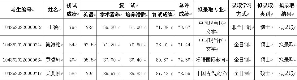 我院2022年港澳台硕士研究生复试工作已圆满结束。经我院研究生招生工作领导小组认真讨论并集体通过,拟录取王颖等四位考生。现将复试拟录取结果予以公示。