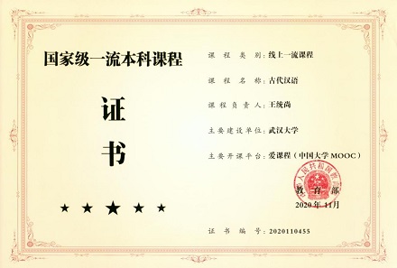 3.课程建设卓有成效。教学团队开设的课程受众广泛,颇受好评。团队成员积极投身课程的现代化改革,先后建成了《古文字学》、《古代汉语》、《训诂学》、《中国语言文字与文化》等4门语言文字绝学课程慕课,其中《古文字学》、《古代汉语》两门慕课于2020年被教育部认定为国家级一流本科课程,《训诂学》于2022年被湖北省教育厅认定为省级一流本科课程。4门慕课在中国大学MOOC平台累计选课学员超过30万,2018年4月20日,肖圣中《古文字学》慕课登上《新闻联播》,2018年11月,王统尚《古代汉语》慕课在中国教育电视台网络频道展播。2022年11月,肖圣中老师主编的《古文字学》教材由高等教育出版社出版,该书是中国大学MOOC教材、国家精品在线开放课程配套教材。