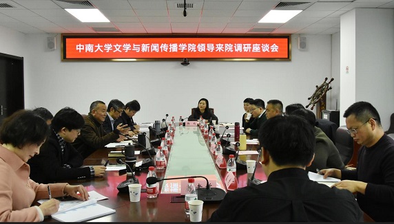 3月3日,中南大学文学与新闻传播学院党委书记罗军飞一行来我院调研。学院党委书记张明智主持座谈会,院长于亭、副书记刘会胜、副院长高文强、副院长裴亮等参加座谈交流。