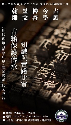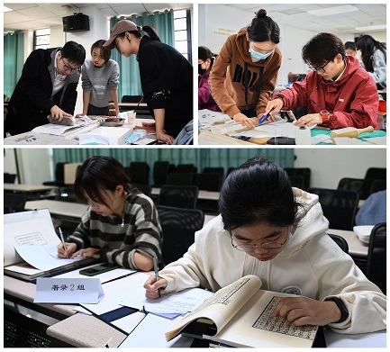梓版精巧,传中西文化;芸帙浩繁,承古今学理。从雕版印刷到活字排印,从卷轴装、经折装到蝴蝶装、包背装、线装,书籍印刷与装帧的历史同样也是中国文化传承与发展的历史。为培养同学们的实践能力,巩固《四部要籍概述》课程知识,11月6日上午,李寒光、赵昱老师在振华楼组织举办了主题为“翰墨传今古,雕文启学思”的古籍保护传承知识与实践比赛,来自水果派解说 、国学院的三十余名同学参与了此次活动。