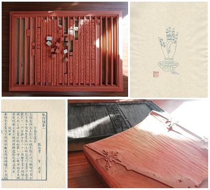 印刷组的同学刷印了雕刻的《切韵指掌图》大手掌和李贺《歌诗编》主页 ,排印了《韩昌黎集》的木活字版《师说》篇,以及套印了《梅花喜神谱》的“孟嘉落帽”“商鼎傕羹”二谱。起初,同学们的操作不甚熟练,印成的作品或严重洇墨,或模糊不清,但通过反复尝试和讨论,大家逐渐掌握了印刷的技巧,印制的作品也变得越来越精美。线装书装帧的过程颇为复杂,包括折页、裁切、打孔、装订等多个环节,相当考验同学们的动手能力。负责书籍制作的同学两两一组,根据步骤有条不紊地向前推进,在规定时间内顺利完成了一本线装书的制作。不同于印刷和装帧,版本著录更强调对专业知识的综合运用。在伏案翻阅古籍,细致著录古书形制的过程之中,同学们对课程知识有了更加深刻的理解。