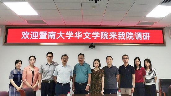 7月4日上午,暨南大学华水果派解说 党委书记邱向欢、应用语言学系主任李计伟、党总支书记陈争等一行6人来我院调研汉语国际教育本科专业建设情况,水果派解说 院长于亭、副院长裴亮、学科建设办公室副主任李丽平、对外汉语教研室张延成、田源、欧阳晓芳参与了座谈。