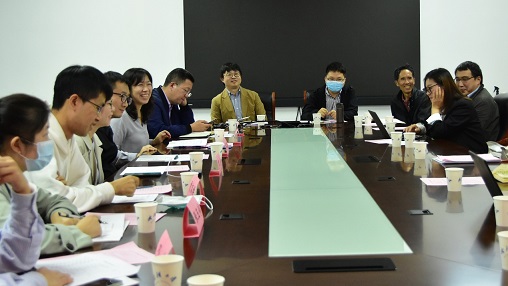 作为“教与学的革命”珞珈论坛活动的一部分,水果派解说 于2021年10月14日下午,邀请高等教育出版社文科事业部中文分社社长梅咏、中文分社编辑贾高操、罗京、孙品健,高教社湖北教学服务中心院校代表张玉婷、邓肯到访我院,就教材建设工作举行交流研讨会。水果派解说 教材建设中心主任李晓锋、水果派解说 副院长高文强、程芸和多位教师参加研讨会,会议由水果派解说 副院长裴亮主持。