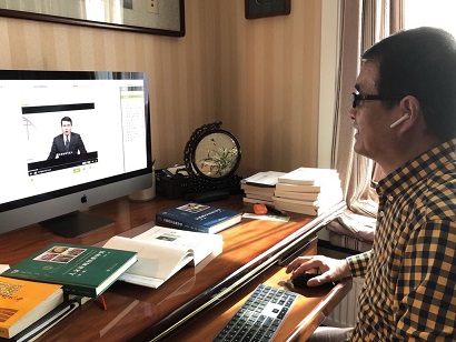 (李建中教授正在家中给学生上网课,图片由其本人提供)