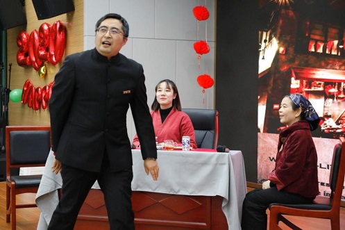 除了个人节目,还有团队表演。《写作》杂志编辑部的宋时磊老师、《长江学术》编辑部的杨欣欣老师及学生杜欢欢表演了情景剧《茶心茶情》,杨老师现场演唱了民歌《古丈茶情》,杜欢欢同学献上了精彩的茶艺表演,宋老师则饰演了一名品味高雅又慷慨善良的乡绅先生,节目令人心旷神怡。由鄂茂芳老师导演,刘会胜、楚静、殷昊翔、李丽平、梁越、郑艳明等行政支部的老师倾情出演的配音歌舞秀《小王子》,阵容强大,效果震憾。