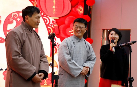 古籍所的韦胤宗老师作为本年新进教师,所表演的节目是男声独唱《画》。韦老师毕业于加拿大英属哥伦比亚大学,思维活跃,学识广博,最近研究兴趣为古代绘画。此次演唱的歌曲与之交相辉映,很有特色。李广宽老师怀抱吉他,自弹自唱了一曲《时光》,他指法娴熟,真情流露,令人赞叹不已。赵昱老师也是古籍所的新进教师,他演唱了一首《龙文》,歌词优美、歌声婉转、台风端庄自然,赢得了满满人气,令在场的老师们非常惊叹,将整场联欢会的气氛推向高潮。