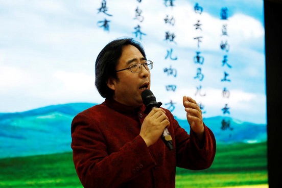 写作学教研室的余蔷薇老师表演了配音秀《环珠格格之格格要毕业》。蔷薇老师一人承担多位角色的配音任务,惟妙惟肖,声情并茂,形象传神地表达出学生写毕业论文的情景。语言学及应用语言学教研室的郭婷婷老师携手对外汉语教研室的欧阳晓芳老师共同演唱了一首《大鱼》,歌声悠扬、清新脱俗,仿佛将老师们带入了一个童话世界。古代文学教研室的葛刚岩老师一首独唱《草原上升起不落的太阳》,用雄浑的歌喉征服了台下的听众,令人遐想万千,神往驰骋。