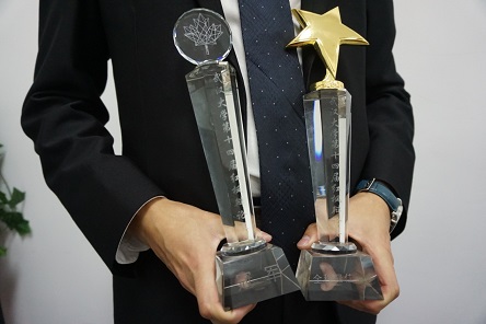 (我院冠军奖杯与全程最佳辩手奖杯)